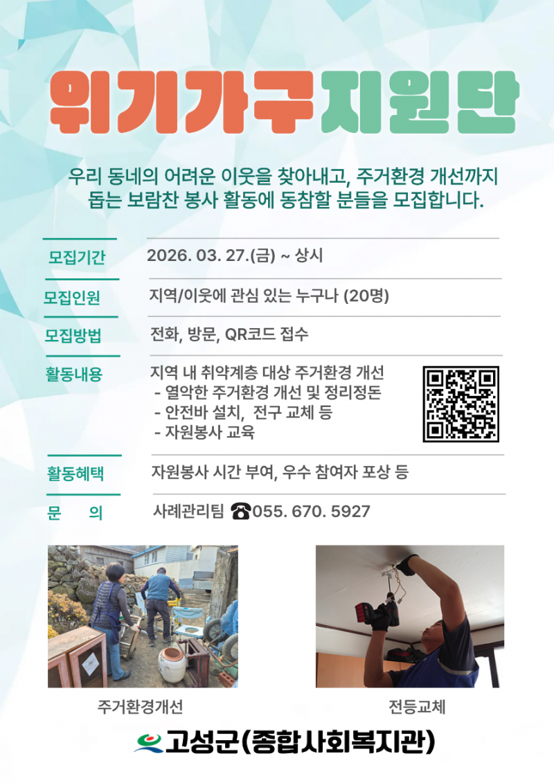 고성군종합사회복지관에서 위기가구 지원단을 모집합니다