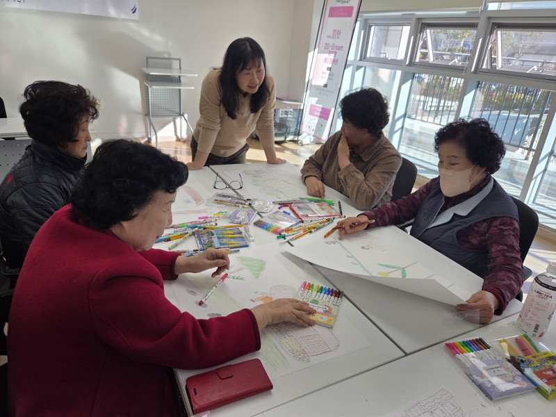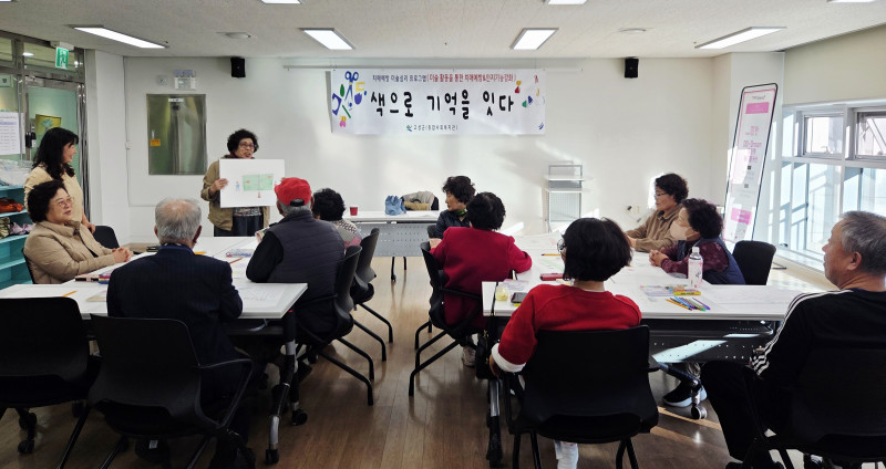 고성군(군수 이상근)이 운영하는 고성군종합사회복지관에서는 11월 14일(금) 치매예방 미술심리 프로그램 『색으로 기억을 잇다』의 1회차 ‘나의 추억 정원’ 활동을 진행하였다.