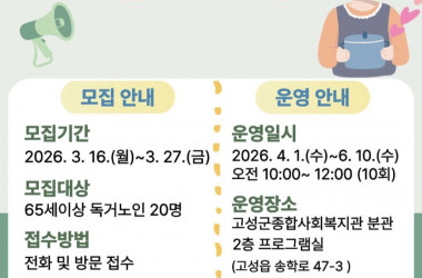 독거노인 사회관계 및 자립능력 강화 사업(하반기)'혼자라도 좋은 일상레시피'