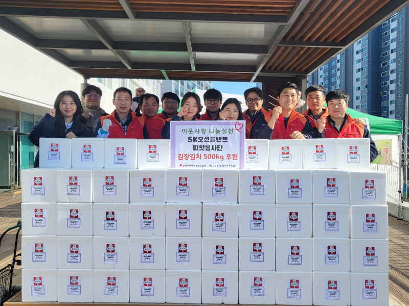 이번 김장 나눔 행사는 SK오션플랜트 띠앗봉사단 봉사자 13명이 참여한 가운데, 2024년에 이어 2년 연속 지역사회를 위한 나눔 활동으로 마련되어 그 의미를 더했다봉사단은 절임 배추와 김장 양념을 지원하고현장에서 직접 김치를 담그며 정성 어린 나눔을 실천했다.