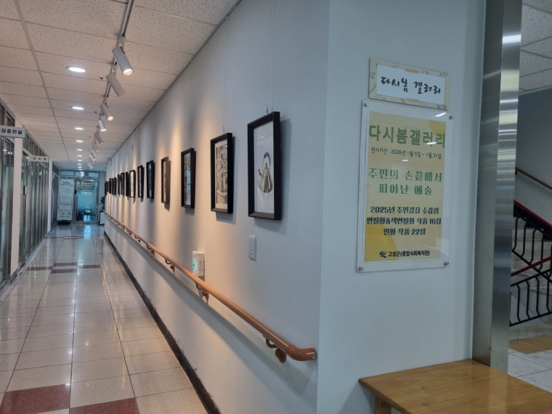 한편다시봄갤러리는 주민 누구나 자유롭게 관람할 수 있는 열린 전신 공간으로지역 주민들의 창작 활동을 응원하고 문화 향유 기회를 확대하고자 운영되고 있다매월 새로운 작품을 전시하고 있으며전시에 참여를 희망하는 개인이나 단체는 고성군종합사회복지관 분관(☎ 670-5925)으로 문의하면 된다.