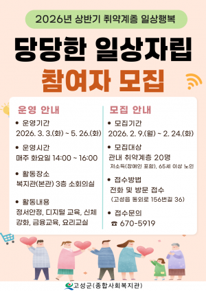취약계층 일상행복 '당당한 일상자립' 참여자 모집